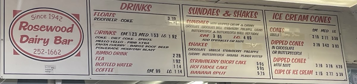 The menu also boasts refreshing ice cream options, with a small cone or cup starting at only $2.40. Notably, the small dipped cones offer lovely customization with various toppings and shell options, perfect for satisfying your sweet tooth.
